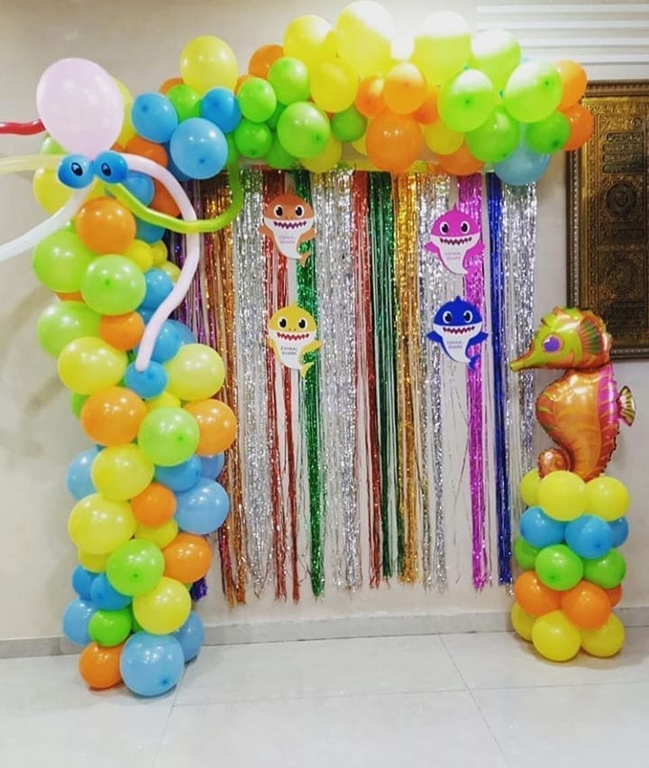 Chủ đề Baby Shark vô cùng đáng yêu đã được Bong Bóng Xinh trang trí đi kèm với chiếc backdrop sinh nhật chủ đề Baby Shark BBX109. THiết kế sử dụng dây tua rua cùng bong bóng giúp các bạn có được một sản phẩm trang trí thật sinh động hứa hẹn các bạn cần tham khảo ngay bộ sản phẩm này đấy!