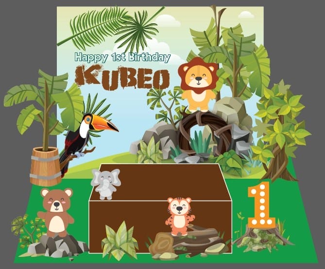 Backdrop sinh nhật cho bé chủ đề The jungle BBX031 là một sản phảm được thiết kế dành riêng cho sinh nhật và thôi nôi của bé. Sản phẩm với màu xanh lá làm chủ đạo vô cùng độc đáo và bắt mắt. Vì sản phẩm không có sẵn quý khách vui lòng liên hệ với chúng tôi theo số Hotline để được tư vấn tốt nhất.