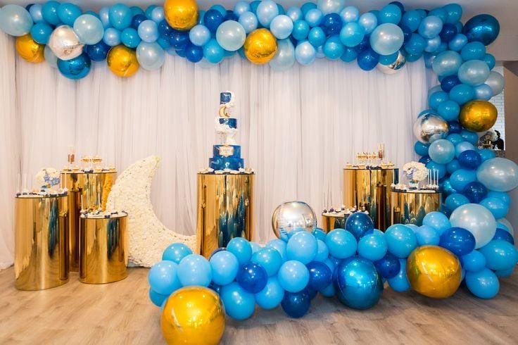 – Sản phẩm có thể trang trí cùng những bộ cổng chào bong bóng trắng hoặc xanh dường cùng đường dẫn hay một bộ bàn gallery trang trí sinh nhật chủ đề trăng khuyết.
