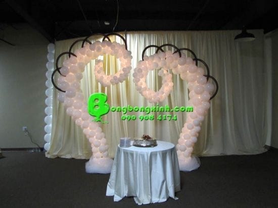 2 trụ kết hợp thành hình trái tim trang trí bàn quà. thích hợp cho sinh nhật và cả lễ cưới.
