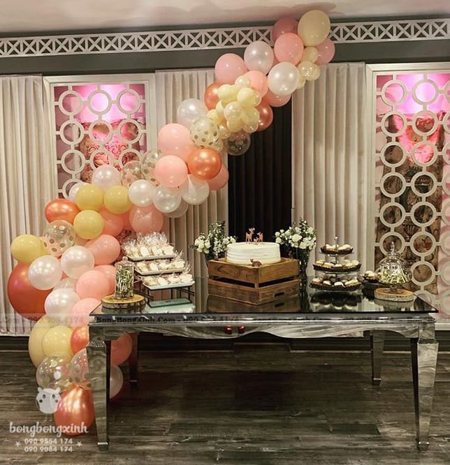 Ngoài ra, nếu có mong muốn trang trí thêm, các bạn có thể sử dụng dịch vụ trang trí sự kiện của Bong Bóng Xinh với những sản phẩm trang trí cổng chào, trụ bong bóng, đường dẫn, backdrop cùng nhiều dịch vụ trang trí sự kiện khác theo yêu cầu khách hàng đề ra.
