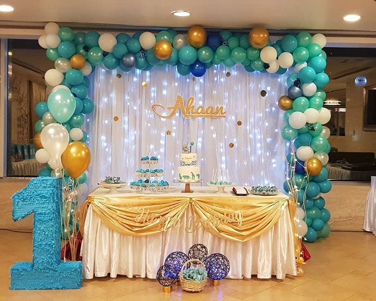 Bộ sản phẩm trang trí sinh nhật trọn gói bàn quà thôi nôi bé trai xanh và trắng BBX088 là một sản phẩm vô cugnf sinh động và độc đáo. Thiết kế gồm một bộ bàn quà cùng backdrop sinh nhật trang trí kèm theo những phụ kiện sinh động.