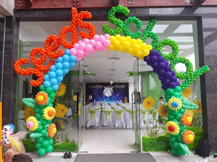 Trang trí khai trương bằng những chiếc cổng bong bóng không còn lạ đối với mọi người đặc biệt là những sự kiện khai trương của các công ty. Chính vì vậy các bạn có thể trang trí cho buổi tiệc của các bạn trở nên sinh động và giúp cho khách mời và người qua đường có thiện cảm với sự kiện hơn. Đó cũng chính là mục đích của cổng bong bóng trang trí khai trương BBX033