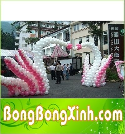 Dây bong bóng cùng hoa tươi trang trí cổng chào tiệc cưới BBX113