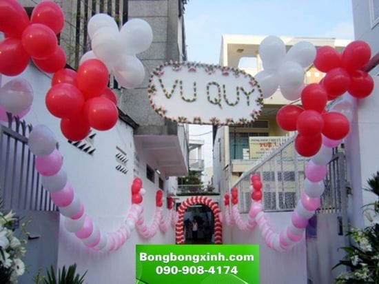 Dây bong bóng cùng hoa tươi trang trí cổng chào tiệc cưới BBX113