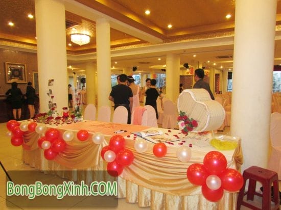 Trang trí bàn kí tên tiệc cưới 037 được trang trí bởi dịch vụ bong bóng xinh, sản phẩm được thiết kế để trang trí bàn kí tên tại các tiệc cưới xinh đẹp.