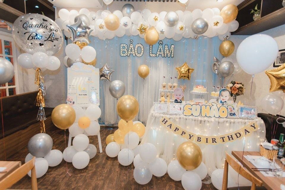 • Sản phẩm gồm: Backdrop sinh nhật, bàn quà, bong bóng bay, bong bóng thả sản và nhiều phụ kiện trang trí khác nữa